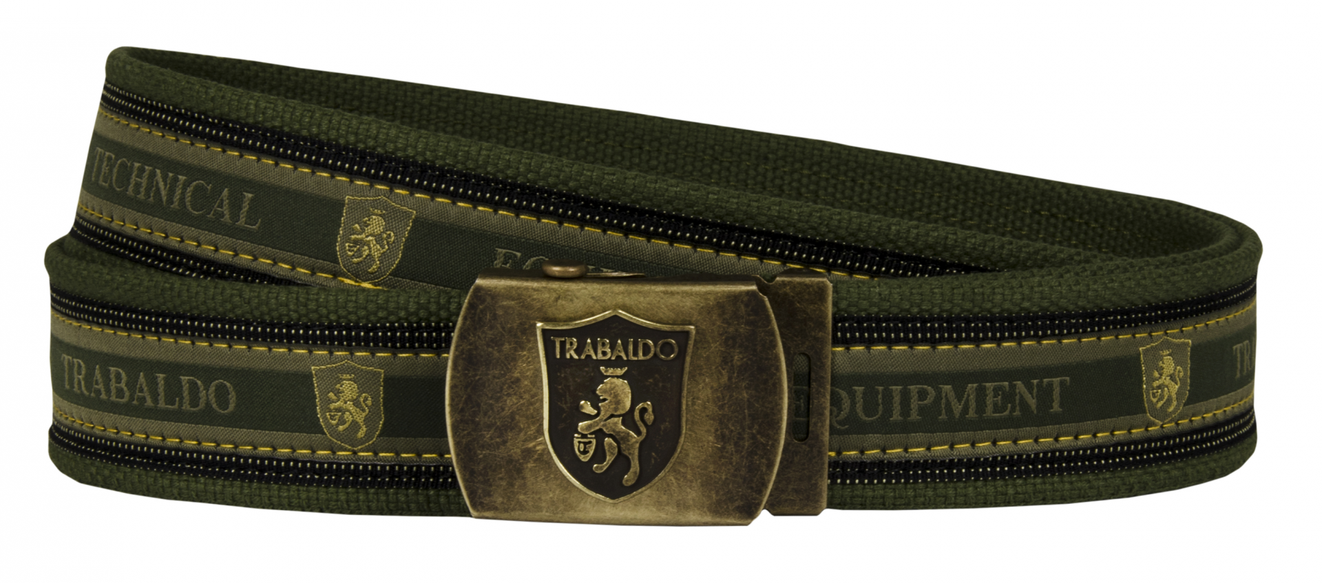 Cintura tecnica regolabile con nastro in cotone, fibbia e puntale personalizzati Trabaldo. Altezza 4 cm, lunghezza 125 cm.
